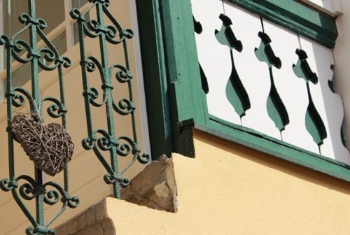 Noch heute erinnern kunstvolle Holzarbeiten am Haus und liebevoll gearbeitete Türen und Stöcke an die einstigen Besitzer.